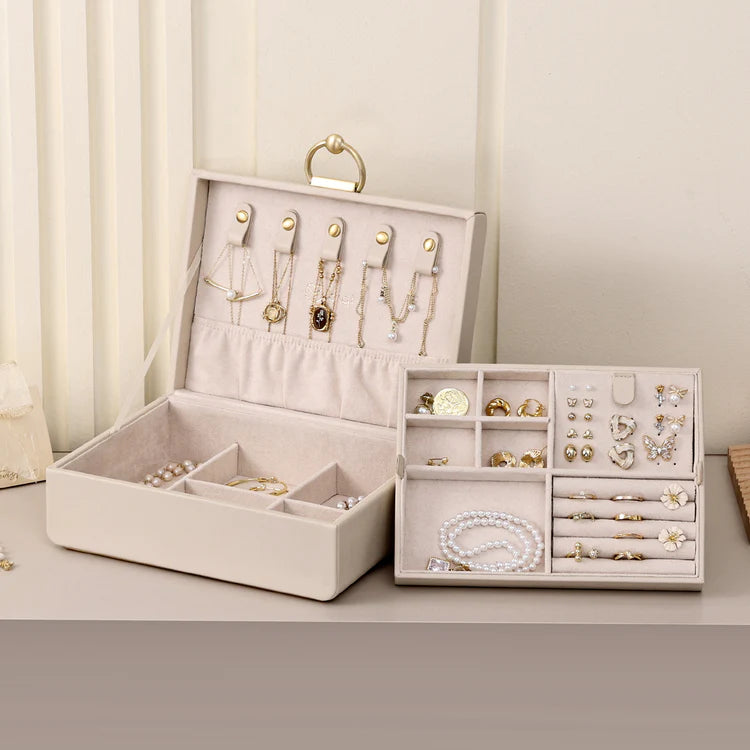 Each organizer is thoughtfully designed, showcasing sophisticated compartments that cater to the unique needs of jewelry enthusiasts.